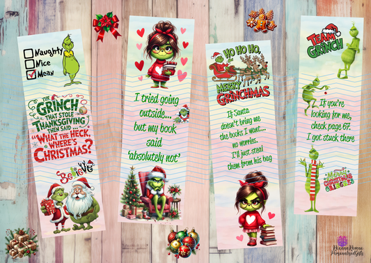 Funny Green Moody Gnome Christmas Bookmarks – Set of 4