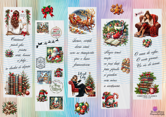 COSY WINTER Tales, Christmas bookmarks - Gift for Book Lovers, 5 set
