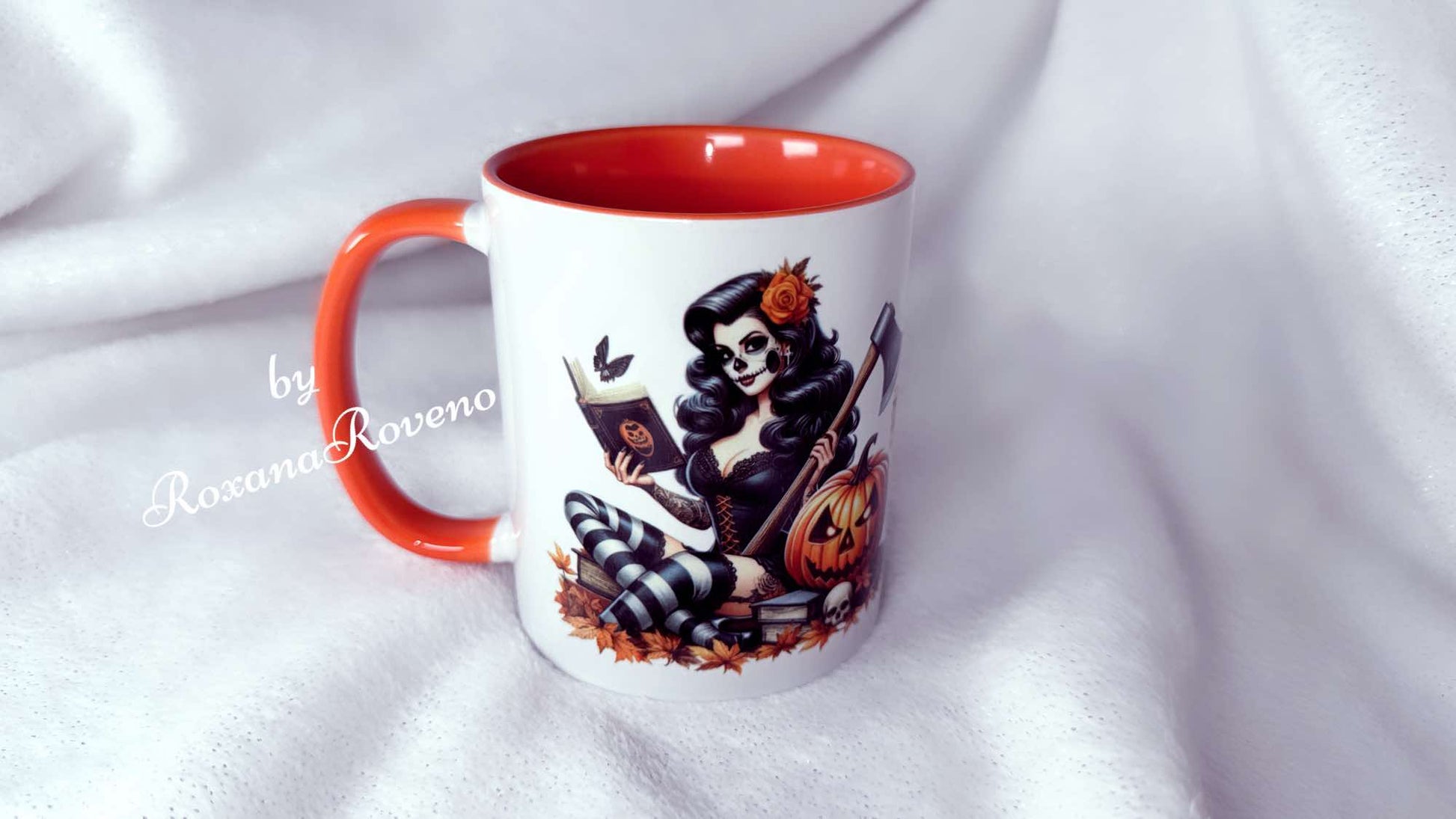 Discover our "Trick or Treat, Witch reading" 11oz ceramic mug, meticulously crafted using the sublimation process to ensure quality and durability.
